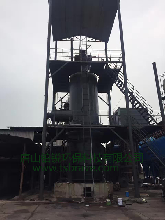 煤由頂部加入,進入兩段式煤氣發生爐干餾段(即上段),依靠下段煤氣的熱量使其加熱,進行低溫干餾。產出低溫干餾的煤氣與焦油,再與從下段上升的部分氣化段煤氣混合而形成上段煤氣。煤經低溫干餾后生成半焦,下降至氣化段與鼓入的氣化劑(由空氣和蒸汽混合而成)進行氧化和還原反應,生產下段煤氣,此煤氣一部分進入干餾段,對煤直接加熱,另一部分通過由垂直通道組成的隔墻對干餾段煤預熱也有通過中心管將熱量帶給干餾段的煤,然后排出,此為下段煤氣。